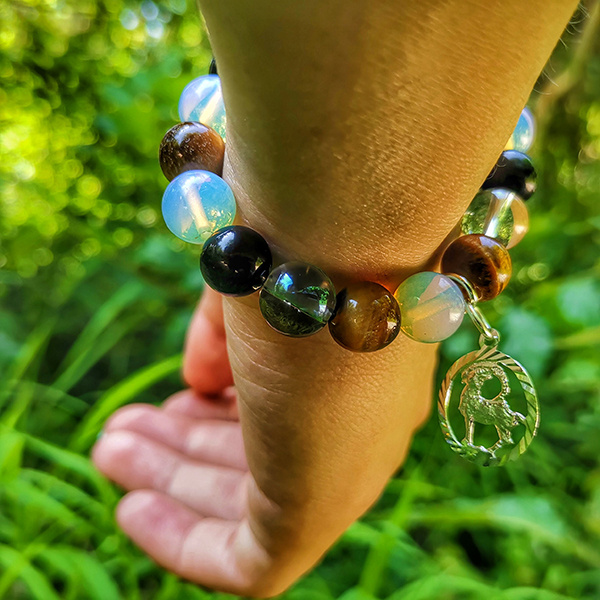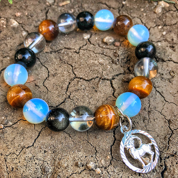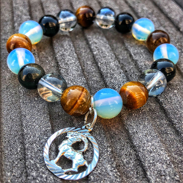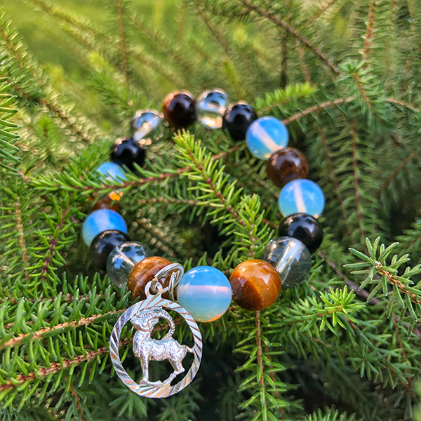 Специално за КОЗИРОГ съчетахме кралски обсидиан, оникс, лунен камък, тигрово око, кристали. Това е силна комбинация от камъни, която спомага за привличане на повече късмет, успехи, увереност, любов и хармония в отношенията, щастие и жизнерадост.