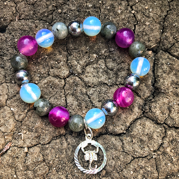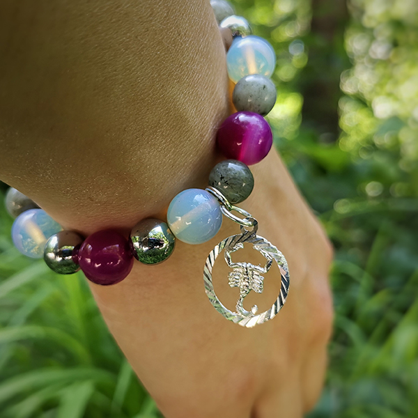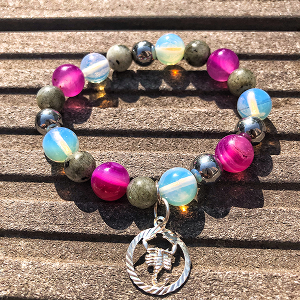 Специално за Скорпион съчетахме ахат, лабрадорит, лунен камък, хематит. Това е силна комбинация от камъни, която спомага за привличане на повече късмет, успехи, увереност, любов и хармония в отношенията, щастие и жизнерадост.